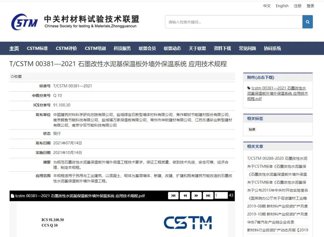 [【新闻】CSTM团体标准《石墨改性水泥基保温板外墙外保温系统应用技术规程》已正式发布!]